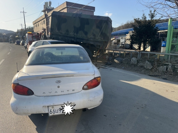 2026³â 2¿ù 27ÀÏ ¿ÀÈÄ 3½Ã 30ºÐ°æ, Æ÷õ½Ã ½ÅºÏ¸é ÇϽɰî ÀαÙ(½ÅÆò¸® 387-5) µµ·Î¿¡¼ °ü¿ëÂ÷°¡ Áß¾Ó¼±À» ħ¹üÇØ µµ·Îº¯¿¡ ÁÖÂ÷µÅ ÀÖ´ø Æ®·¹ÀÏ·¯ ¹× Àå±â ¹æÄ¡ Â÷·®°ú ÀÕµû¶ó Ãæµ¹ÇÏ´Â »ç°í°¡ ¹ß»ýÇß´Ù.
