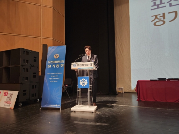 À̾ ¹é¿µÇö Æ÷õ½ÃÀåÀÌ "Æ÷õÁ¦ÀϽÅÇù Á¶ÇÕ¿øÀÇ ÇÑ»ç¶÷À¸·Î Æ÷õÁ¦ÀϽÅÇù ⸳50ÁÖ³â°ú Á¦36Â÷ Á¤±âÃÑȸ¸¦ ÃàÇÏÇßÀ¸¸ç, Æ÷õÀÇ Áö¿ª»ó±ÇȰ¼ºÈ­¸¦ À§ÇØ Áö³­10³â°£ Æ÷õÁ¦ÀϽÅÇù»óǰ±ÇÀ¸·Î ¸¹Àº ¼Ò»ó°øÀÎÀÌ ÇýÅÃÀ» ¹Þ¾Æ »ó»ýÇÏ´Â ½ÅÇùÀÌ µÇ¾ú´Ù"¸é¼­ °¨»çÀÇ ¸»À» ÀüÇß´Ù. ¾ÕÀ¸·Îµµ Æ÷õÁ¦ÀϽÅÇùÀÇ ¹ßÀüÀ» ±â¿øÇß´Ù.
