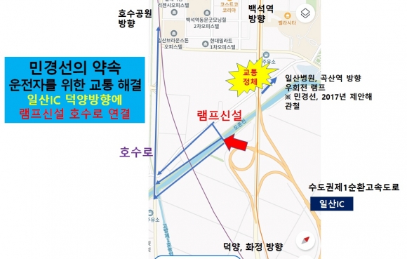 ÀÌ¿¡ ´ëÇÑ ÇØ°áÃ¥À¸·Î ¹Î È帴 'ÀÏ»êIC~È£¼ö·Î ¿¬°á ·¥ÇÁ ½Å¼³'À̶ó´Â ½ÇÁúÀûÀÎ Ä«µå¸¦ ²¨³» µé¾ú´Ù. ÀÏ»êIC¿¡¼ ´ö¾ç ¹æÇâÀ¸·Î ÁøÃâÇÏ´Â ±¸°£¿¡ º°µµÀÇ Àü¿ë ·¥ÇÁ¸¦ ¼³Ä¡ÇØ À̸¦ 'È£¼ö·Î'¿Í Á÷Á¢ ¿¬°áÇÔÀ¸·Î½á ±³Åë·®À» ºÐ»ê½ÃŰ°Ú´Ù´Â °èȹÀÌ´Ù.