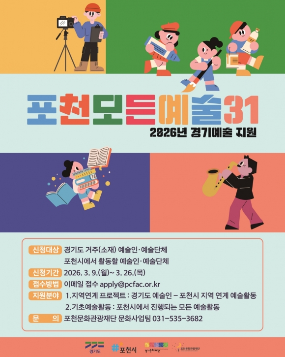 ¡®Æ÷õ ¸ðµç¿¹¼ú31¡¯ »ç¾÷Àº Æ÷õ¹®È°ü±¤Àç´Ü°ú °æ±â¹®ÈÀç´ÜÀÌ Çù·ÂÇØ ÃßÁøÇÏ´Â »ç¾÷À¸·Î, Áö³ 2022³âºÎÅÍ Áö¿ª ¿¹¼ú Ȱµ¿ Ȱ¼ºÈ¸¦ À§ÇØ ¿î¿µµÇ°í ÀÖ´Ù. °ø¸ð ´ë»óÀº °æ±âµµ ¹× Æ÷õ½Ã¿¡¼ Ȱµ¿ÇÏ´Â ¿¹¼úÀΰú ¿¹¼ú´ÜüÀ̸ç, Æ÷õ½Ã Àü¿ª¿¡¼ ½Ã¹ÎµéÀÌ ¹®È¿¹¼úÀ» ÇâÀ¯ÇÒ ¼ö ÀÖµµ·Ï Áö¿ª ¿¬°è ÇÁ·ÎÁ§Æ®¿Í ±âÃÊ¿¹¼ú Ȱµ¿À» Áö¿øÇÑ´Ù.