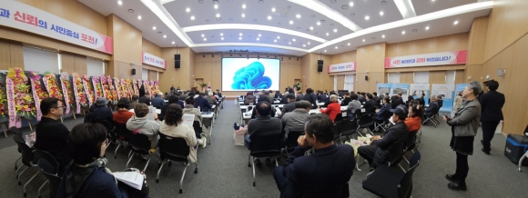 À̳¯ Çà»ç¿¡¼­´Â Á¦8´ë À¯ÅÂ±Õ È¸ÀåÀÇ ÀÌÀÓ°ú ÇÔ²² Á¦9´ë ±èÁø¼± ȸÀåÀÌ »õ·Ó°Ô ÃëÀÓÇß´Ù. Çà»ç¿¡´Â Æ÷õ½ÃÀåÀ» ºñ·ÔÇØ Æ÷õ½ÃÀÇȸ ÀÇÀå°ú ½ÃÀÇ¿øµéÀÌ Âü¼®ÇØ È¯°æ³ó¾÷´ëÇÐ Ãѵ¿¹®È¸ ´ëÀÇ¿øµé°ú µ¿¹®µé¿¡°Ô Àλ縦 ÀüÇϸç ÃàÇÏÀÇ ¶æÀ» ÀüÇß´Ù.