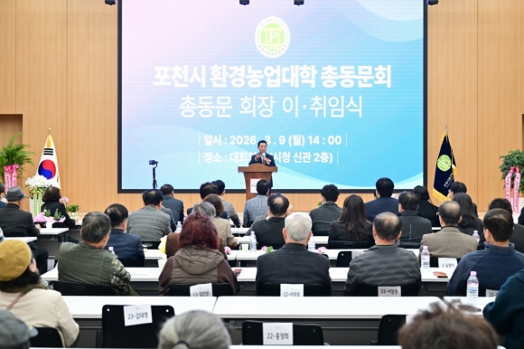 Æ÷õ½Ã ȯ°æ³ó¾÷´ëÇÐ Ãѵ¿¹®È¸´Â Áö³­ 2026³â 3¿ù 9ÀÏ ¿ÀÈÄ 1½Ã Æ÷õ½Ãû ´ëȸÀǽǿ¡¼­ Ãѵ¿¹®È¸ ´ëÀÇ¿ø ¹× °ü°èÀÚ 200¿© ¸íÀÌ Âü¼®ÇÑ °¡¿îµ¥ Á¦8´ë¡¤Á¦9´ë ȸÀå ÀÌ¡¤ÃëÀÓ½ÄÀ» °³ÃÖÇß´Ù.