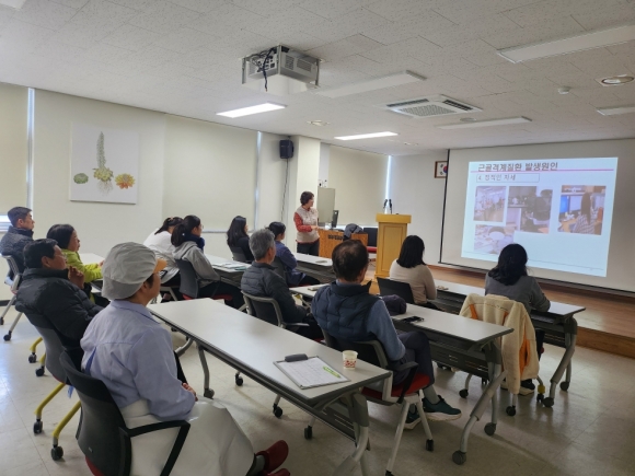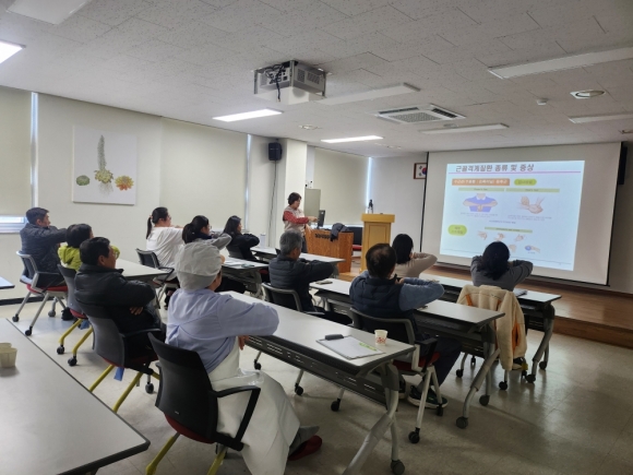 »ê¸²Ã» ±¹¸³¼ö¸ñ¿ø(¿øÀå ÀÓ¿µ¼®)Àº »ê¸²»ý¹°ÀÚ¿øÈ°¿ë¼¾ÅÍ Á÷¿øµéÀÇ ±Ù°ñ°Ý°èÁúȯ ¿¹¹æ°ú °Ç°­ ÁõÁøÀ» À§ÇØ Àü¹® °­»ç¸¦ ÃʺùÇØ Áö³­ 3¿ù 11ÀÏ º¸°Ç±³À°À» ½Ç½ÃÇß´Ù.