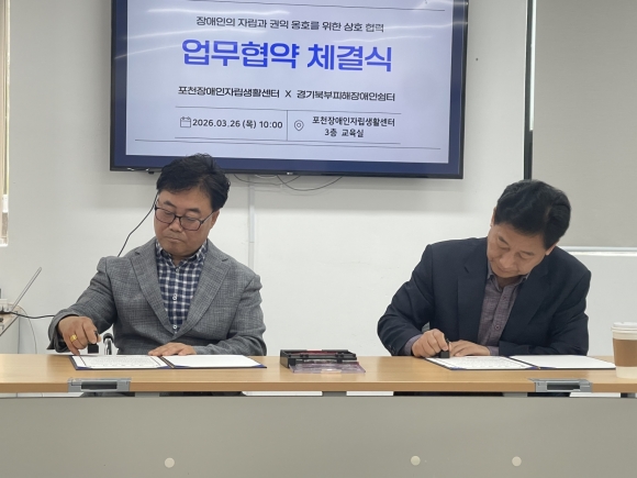 Æ÷õÀå¾ÖÀÎÀÚ¸³»ýȰ¼¾ÅÍ(¼¾ÅÍÀå ¼Û±âÅÂ, ÀÌÇÏ ¡®Æ÷õIL¼¾ÅÍ¡¯)´Â 2026³â 3¿ù 26ÀÏ ¸ñ¿äÀÏ °æ±âºÏºÎÇÇÇØÀå¾ÖÀν°ÅÍ(¿øÀå ÀÌÁÖ¹¬)¿Í Áö¿ª»çȸ ³» ÇдëÇÇÇØ Àå¾ÖÀÎÀÇ ±ÇÀÍ ÁõÁø°ú »çȸÅëÇÕ ½ÇÇöÀ» À§ÇÑ ¾÷¹«Çù¾à(MOU)À» ü°áÇÏ¿´´Ù.