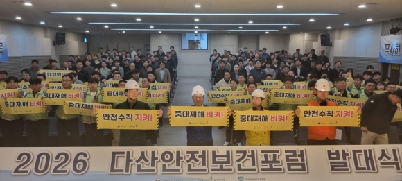 | °æ±âºÏºÎ °Ç¼³ÇöÀåÀÇ ÀÚÀ²ÀûÀÎ ¾ÈÀü¹®È Á¤ÂøÀ» ¼±µµÇØ ¿Â ¡®´Ù»ê¾ÈÀüº¸°ÇÆ÷·³¡¯ÀÌ 2026³â ÇÑ ÇØÀÇ ¾ÈÀü ÀÇÁö¸¦ °áÁýÇÏ´Â ´ë±Ô¸ð ¹ß´ë½ÄÀ» °³ÃÖÇϸç ÈûÂù Çຸ¸¦ ½ÃÀÛÇß´Ù.