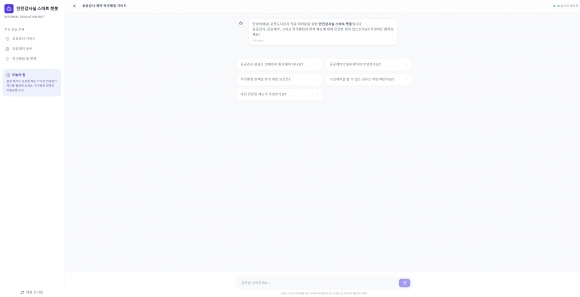 À̹ø¿¡ ±¸ÃàµÈ ±³À°Ã¼°èÀÇ ÇÙ½ÉÀº ¡®¿µ»ó ±â¹Ý ÇнÀ¡¯°ú ¡®AI 꺿 ÁúÀÇÀÀ´ä ½Ã½ºÅÛ¡¯ÀÇ °áÇÕÀÌ´Ù. ¾ÈÀü°¨»ç½ÇÀº °ø°ø°¨»ç¹ý, °ø°ø°è¾à, Àû±ØÇàÁ¤ ¹× ¸éÃ¥Á¦µµ µî °¨»ç ÇÙ½É ºÐ¾ß¸¦ Áß½ÉÀ¸·Î ½Ç¹« »ç·Ê ±â¹Ý µ¿¿µ»ó ±³À°ÀڷḦ AI¸¦ ÀÌ¿ëÇÏ¿© ÀÚü Á¦ÀÛÇÏ¿´À¸°í, À̸¦ ÅëÇØ Á÷¿øµéÀÌ ½Ã°£°ú Àå¼Ò¿¡ ±¸¾Ö¹ÞÁö ¾Ê°í ¹Ýº¹ ÇнÀÀÌ °¡´ÉÇϵµ·Ï ¼³°èÇÏ¿´´Ù.