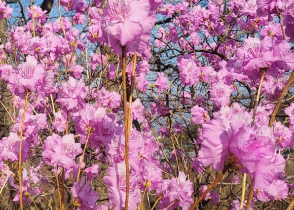 | ¿¬ºÐÈ« Áø´Þ·¡°¡ »êÀÚ¶ôÀ» ¹°µéÀÌ¸ç º½ÀÇ Á¤Ã븦 ±í°Ô ¸¸µç´Ù. ±â´Ù¸²°ú »ç¶ûÀÇ À̾߱⸦ ǰÀº ²Éó·³, ÀÚ¿¬ÀÇ µû¶æÇÑ ¼û°áÀÌ ´À²¸Áø´Ù. < ÃßÈ£°æ / Æ÷õ½Å¹® ½Ã¹Î±âÀÚ >