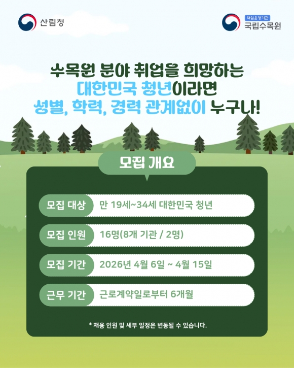»ê¸²Ã» ±¹¸³¼ö¸ñ¿ø(¿øÀå ÀÓ¿µ¼®)Àº ±¹³» ¼ö¸ñ¿ø ºÐ¾ß ¹Ì·¡ÀÎÀ縦 ¾ç¼ºÇϱâ À§ÇØ 4¿ù 6ÀÏ(¿ù)ºÎÅÍ 15ÀÏ(¼ö)±îÁö ¡®±¹¸³¼ö¸ñ¿ø Àü±¹ ¼ö¸ñ¿ø¡¤½Ä¹°¿ø û³âÀÎÅÏ¡¯À» ¸ðÁýÇÑ´Ù.