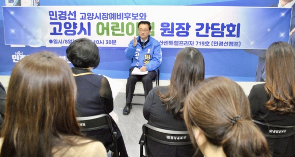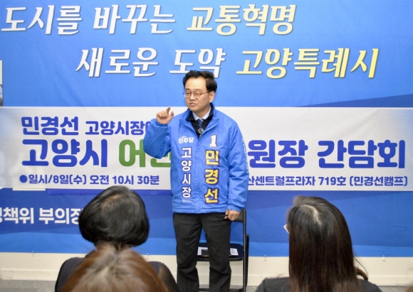 | ¹Î°æ¼± °í¾ç½ÃÀå ¿¹ºñÈ帰¡ 8ÀÏ ¿ÀÀü, ¼±°Å»ç¹«¼Ò¿¡¼ °í¾ç½Ã¾î¸°ÀÌÁý¿¬ÇÕȸ ÀÓ¿ø ¹× ¿øÀå 30¿© ¸í°ú ÇÔ²² °í¾çƯ·Ê½Ã ±³À°¡¤º¸À° Á¤Ã¥ÀÇ ¹Ì·¡¸¦ ¼³°èÇÏ´Â Á¤Ã¥ Á¦¾È °£´ãȸ¸¦ °¡Á³´Ù.