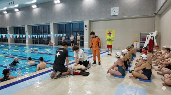 ±³À°Àº ¼ö»ó¾ÈÀü¿ä¿ø µî ÃÑ 34¸íÀ» ´ë»óÀ¸·Î µÎ Â÷·Ê ÁøÇàµÆÀ¸¸ç, À̷б³À°°ú ½Ç½À±³À°À¸·Î ³ª´² ¿î¿µÇß´Ù. À̷б³À°¿¡¼´Â ¼ö¿µÀå ¾ÈÀü°ü¸® ±âÁذú »ç°í ¹ß»ý ½Ã ´ëÀÀ ÀýÂ÷¸¦ Áß½ÉÀ¸·Î ¾ÈÀü°ü¸® ü°è¸¦ Á¡°ËÇß´Ù. ½Ç½À±³À°¿¡¼´Â ¾ÈÀü»ç°í ¹ß»ý ½Ã 119 ½Å°í ÀýÂ÷, ÀͼöÀÚ ±¸Á¶ ¿ä·É, ÀÀ±Þóġ, ½ÉÆó¼Ò»ý¼ú(CPR), ÀÚµ¿½ÉÀåÃæ°Ý±â(AED) »ç¿ë¹ý µîÀ» ½ÇÁ¦ »óȲ¿¡ ¸ÂÃç ÈÆ·ÃÇß´Ù.