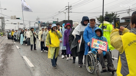 | Áö³ 10ÀÏ ¿ÀÀü 9½Ã 30ºÐ, Æ÷õ½Ã 420 Àå¾ÖÀÎ ±ÇÀÍ¿ËÈ£¿¬´ë(ÀÌÇÏ 420 ¿¬´ë)°¡ ÁÖÃÖÇÑ Á¦14ȸ ¡®420 µÎ ¹ÙÄû·Î °¡´Â ¼¼»ó µµº¸ ÇàÁø¡¯ÀÌ Æ÷õ½Ã ÀÏ´ë¿¡¼ ÁøÇàµÆ´Ù. ±ÄÀº ³¯¾¾ ¼Ó¿¡¼µµ Àå¾ÖÀÎ ´ç»çÀÚ¿Í °¡Á·, Ȱµ¿Áö¿ø»ç, ¿¬´ë ´Üü ¹× Æ÷õ ½Ã¹Î µî ¾à 300¿© ¸íÀÌ Âü°¡ÇØ ¼ÒÈêÀ¾ÇàÁ¤º¹Áö¼¾ÅͺÎÅÍ Æ÷õ½Ãû¿¡ À̸£´Â ¾à 11.5km ±¸°£À» ³¡±îÁö ¿ÏÁÖÇß´Ù.