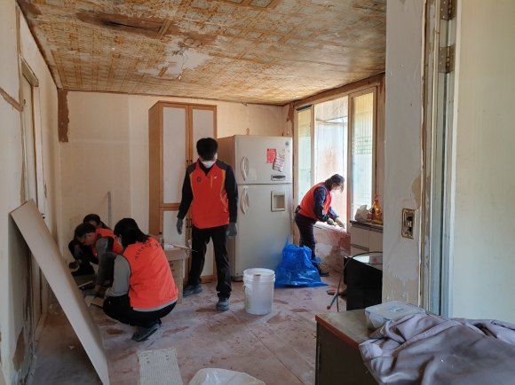 À̳¯ ºÀ»çȰµ¿¿¡´Â ´ëÁø´ëÇб³ »çȸºÀ»ç´Ü ¼Ò¼Ó ÇлýµéÀÌ Âü¿©ÇØ ³°Àº º®Áö¿Í ÀåÆÇÀ» ±³Ã¼Çϰí ÁÖ°Å °ø°£À» Á¤ºñÇÏ´Â µî ÄèÀûÇÏ°í ¾ÈÀüÇÑ »ýȰȯ°æ Á¶¼º¿¡ ÈûÀ» º¸ÅÉ´Ù.
