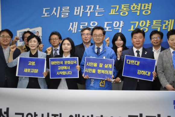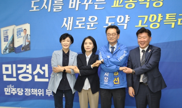 16ÀÏ ¿ÀÀü 11½Ã, ¹Î°æ¼± °í¾ç½ÃÀå ¿¹ºñÈĺ¸ ¼±°ÅÄ·ÇÁ »ç¹«½Ç¿¡¼ Ãֽ¿ø¡¤ÀÌ¿µ¾Æ¡¤À̰æÇý ¿¹ºñÈ帴 °øµ¿ ÀÔÀå¹®À» ¹ßÇ¥ÇÏ°í ¡°¹Î°æ¼± È常¦ ÁöÁöÇÏ¸ç °í¾çÀÇ ¹Ì·¡¸¦ À§ÇØ ³¡±îÁö ÇÔ²² Çϰڴ١±°í °ø½Ä ¼±¾ðÇß´Ù.