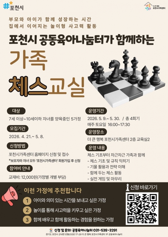 ¡¸°¡Á· ü½º ±³½Ç¡¹ ÇÁ·Î±×·¥ Âü¿© ½Åû ¹× ÀÚ¼¼ÇÑ ÀÏÁ¤Àº Æ÷õ½Ã°¡Á·¼¾ÅÍ È¨ÆäÀÌÁö ¡®ÇÁ·Î±×·¥ ½Åû¡¯ ¸Þ´º¿¡¼ È®ÀÎÇÒ ¼ö ÀÖÀ¸¸ç, °ü·Ã ¹®ÀÇ´Â ´õ Å« Çູ Æ÷õ½Ã°¡Á·¼¾ÅÍ °øµ¿À°¾Æ³ª´®ÅÍ ´ã´çÀÚ(¢Ï031-538-3291)¿¡°Ô ÇÏ¸é µÈ´Ù.