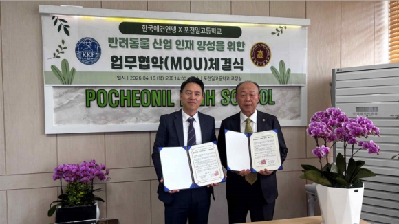 Æ÷õÀϰíµîÇб³´Â ¹Ý·Áµ¿¹° »ê¾÷ ºÐ¾ßÀÇ Àü¹® ÀÎÀç ¾ç¼ºÀ» À§ÇØ Çѱ¹¾Ö°ß¿¬¸Í°ú »êÇÐÇù·Â ¾çÇØ°¢¼­(MOU)¸¦ ü°áÇÏ¿´´Ù.