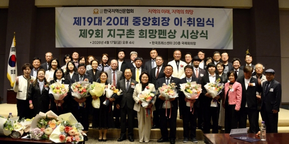 | Àü±¹ 165°³ Áö¿ª½Å¹®»ç°¡ ¿¬´ëÇÏ´Â (»ç)Çѱ¹Áö¿ª½Å¹®Çùȸ°¡ Á¦20´ë Áß¾ÓȸÀå ÃëÀӽİú Á¦9ȸ Áö±¸ÃÌÈñ¸ÁÆæ»ó ½Ã»ó½ÄÀ» ¼ºÈ²¸®¿¡ °³ÃÖÇÏ¸ç »õ·Î¿î µµ¾àÀ» ¾Ë·È´Ù.