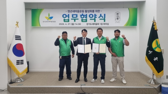 | °æ±âµµÃ»³â»õ¸¶À»¿¬ÇÕȸ°¡ Áö¿ª ±â¾÷°ú ¼ÕÀâ°í û³â Á᫐ »õ¸¶À»¿îµ¿ È®»ê¿¡ ³ª¼¹´Ù. °æ±âµµÃ»³â»õ¸¶À»¿¬ÇÕȸ(ȸÀå ÃÖº´¹«)´Â 4¿ù 27ÀÏ ¿ÀÈÄ 2½Ã, °æ±âµµ»õ¸¶À»È¸ 1Ãþ ȸÀǽǿ¡¼ À¾Ãµ¸®382Ä¿ÇÇ(»ç¾÷º»ºÎÀå ¾È´ë±Ô)¿Í û³â»õ¸¶À»¿îµ¿ Ȱ¼ºÈ¸¦ À§ÇÑ ¾÷¹«Çù¾à(MOU)À» ü°áÇß´Ù.