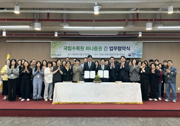 »ê¸²Ã» ±¹¸³¼ö¸ñ¿ø(¿øÀå ÀÓ¿µ¼®)°ú ÇϳªÁõ±Ç(´ëÇ¥ÀÌ»ç °­¼º¹¬)Àº Áö³­ 4¿ù 27ÀÏ ¡®±âÈÄÀ§±â ´ëÀÀ »ê¸²»ý¹°´Ù¾ç¼º º¸Àü ¹× »ê¸²»ýÅÂ°è º¹¿øÀ» À§ÇÑ ¾÷¹«Çù¾à¡¯À» ü°áÇß´Ù.