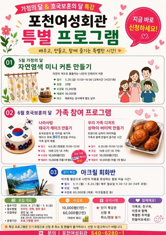 Æ÷õµµ½Ã°ø»ç(»çÀå ±èÈ¿Áø) ¿©¼ºÈ¸°üÀº °¡Á¤ÀÇ ´Þ°ú È£±¹º¸ÈÆÀÇ ´ÞÀ» ¸Â¾Æ ½Ã¹Î Âü¿©Çü üÇè ÇÁ·Î±×·¥ÀÎ ¡®Æ¯° ÇÁ·Î±×·¥¡¯ ¼ö°»ýÀ» ¸ðÁýÇÑ´Ù°í ¹àÇû´Ù.