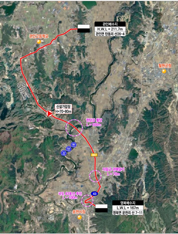 ÀÌ¿¡ ½Ã´Â ±¤¿ª»ó¼öµµ ±â¹ÝÀÎ ¿µºÏ¹è¼öÁö¿Í °üÀÎÁ¤¼öÀåÀ» ¿¬°áÇÏ´Â ÃÑ¿¬Àå 12km ±Ô¸ðÀÇ ¼Û¼ö°ü·Î¿Í °¡¾ÐÀå 1°³¼Ò¸¦ ½Å¼³ÇØ ±¤¿ª»ó¼öµµ¿Í Áö¹æ»ó¼öµµ °£ ºñ»ó ¿¬°è ü°è¸¦ ±¸ÃàÇÒ °èȹÀÌ´Ù.