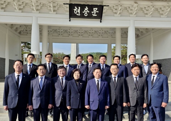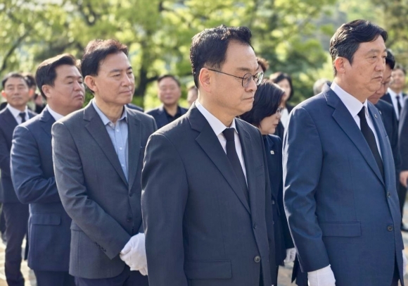 ¹Î È帴 À̳¯ ¿ÀÀü 8½ÃºÎÅÍ ½ÃÀÛµÈ °ø½Ä Çà»ç¿¡¼ °æ±âµµ´ç ÁöµµºÎ¿Í ÇÔ²² ÇöÃæÅ¾¿¡ ÇåÈÇÏ°í ºÐÇâÇß´Ù. ÀÌ¾î °í ±è´ëÁß ´ëÅë·É, ÀÌÈñÈ£ ¿µºÎÀÎÀÇ ¹¦¼Ò µîÀ» ¹æ¹®ÇÏ¸ç ³ª¶ó¸¦ À§ÇØ Èñ»ýÇÑ ¿µ·ÉµéÀÇ ¼þ°íÇÑ Á¤½ÅÀ» ±â¸®´Â ½Ã°£À» °¡Á³´Ù.