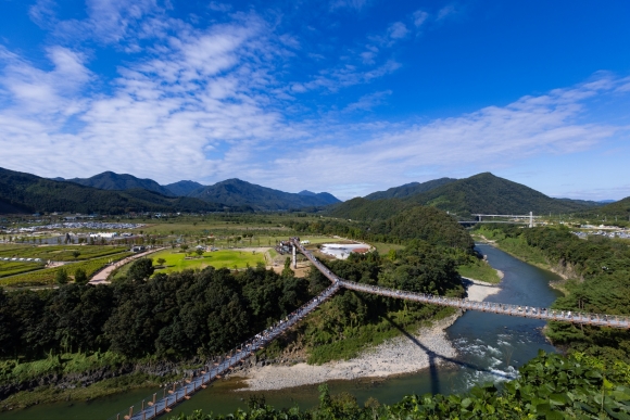 YÇü Ãâ··´Ù¸®¿¡¼ ¸¸³ª´Â ÇÑź°ÀÇ ¾ÐµµÀû dz°æ °¡µçÆä½ºÅ¸ÀÇ »ó¡ÀÎ YÇü Ãâ··´Ù¸®µµ »©³õÀ» ¼ö ¾ø´Ù. ±¹³» ÃÖÀå 410m ±Ô¸ðÀÇ ÇÑź° YÇü Ãâ··´Ù¸®´Â ÇÑź° Çù°î°ú ±â¾ÏÀýº®, Á¤¿ø dz°æÀ» ÇÑ´«¿¡ ´ãÀ» ¼ö ÀÖ´Â ´ëÇ¥ ¸í¼Ò·Î, ÃàÁ¦ÀåÀ» ã´Â °ü±¤°´µé¿¡°Ô °¡Àå ÀλóÀûÀÎ Àå¸éÀ» ¼±»çÇÏ´Â °ø°£ÀÌ´Ù. Á¤¿øÀ» °Å´Ò°í ´Ù¸® À§¿¡ ¿Ã¶ó ÇÑź°ÀÇ ½Ã¿øÇÑ Ç³±¤À» ³»·Á´Ùº¸´Â °æÇèÀº Æ÷õ ÇÑź° º½ °¡µçÆä½ºÅ¸¸¸ÀÇ Æ¯º°ÇÑ ¸Å·ÂÀ¸·Î ²ÅÈù´Ù.